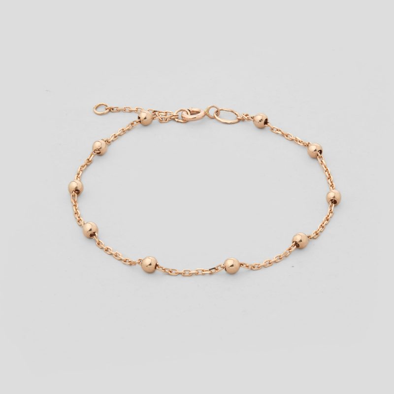 Браслет-ланцюжок з кульками "Жасмин" виконаний з червоного золота 585 проби з якорним плетінням. Мінімалістичний дизайн та витончений ланцюжок роблять його універсальною прикрасою на кожен день. Регульована довжина дозволяє ідеально підлаштувати браслет під ваше зап’ястя, додаючи жіночності та легкості вашому образу.