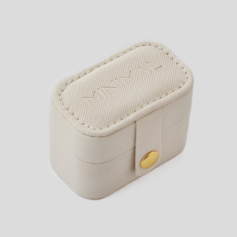 Бʼюті бокс «Early Rise» від Minimal — у світло-бежевому кольорі, що нагадує перше денне світло. Виконаний з еко-шкіри з м’яким оксамитовим інтер’єром, він дбає про безпечне зберігання каблучок і сережок під час подорожей. Компактний розмір 6.5×3.5×4.5 см, застібка-кнопка та лаконічний дизайн роблять його практичним і стильним доповненням до твоїх щоденних ритуалів.