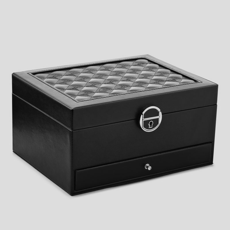 Бʼюті бокс «Dreamtime» у чорному кольорі — це вечірня елегантність і тиша після насиченого дня. Глибокий відтінок, м’яка бежева оббивка всередині й контрастна фактура створюють відчуття стабільності й сили. Дзеркало, замок і багаторівнева структура допомагають зберігати порядок серед улюблених прикрас.