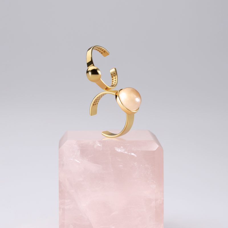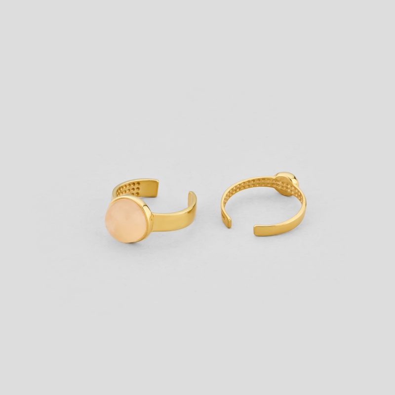 Комплект каф «Рожевий дотик» із срібла 925 проби з позолотою. Два мініатюрні кільця-кафи огортають вухо без проколів: один прикрашений гладкою золотою кулькою, інший — рожевим кварцом у лаконічному касті. Вони легко надягаються й утримуються завдяки відкритій конструкції, даруючи комфорт і свободу стилю. Можна носити їх разом для створення виразного акценту або окремо — для мінімалістичного штриха. Цей комплект — частина колекції «Шлях Афродіти», яка розповідає про ніжність у сучасній інтерпретації.
