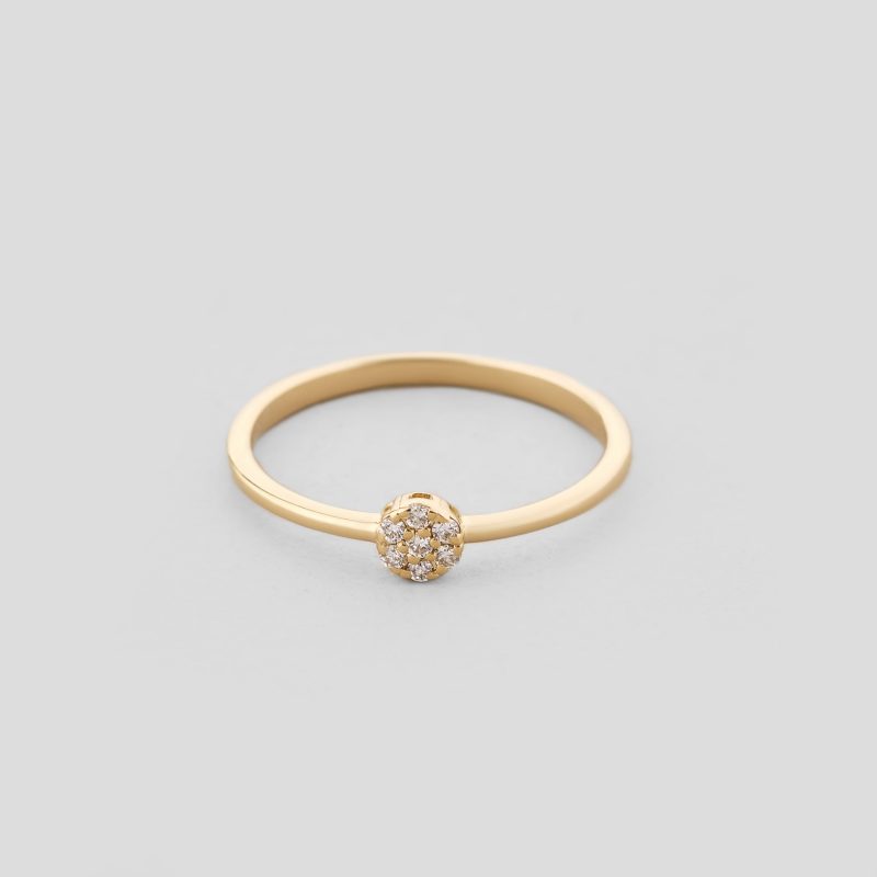 Золота каблучка з білими діамантами "Світ почуттів" стане символом елегантності та розкоші. Витончена форма каблучки та круглі вставки з діамантів робить цю прикрасу ідеальним вибором для тих, хто цінує стриманий та вишуканий стиль.