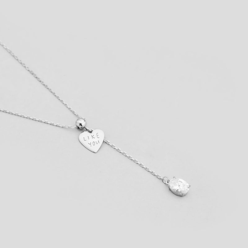 Тихе зізнання — кулон зі срібла 925 проби у формі серця з гравіюванням LIKE YOU і витонченим фіанітом на ланцюжку. Це про симпатію, яка ще не стала любов’ю — але вже світиться. Носиться легко, підходить до повсякденних образів, білих футболок, сорочок і моментів, коли хочеться трохи чесності без гучних слів.