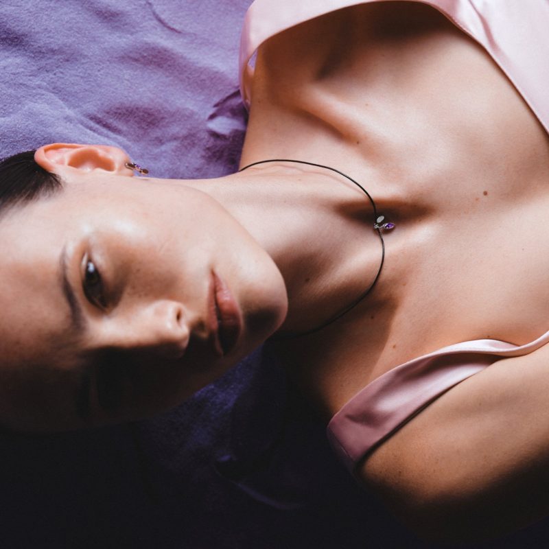 Підвіска Краплини ніжності із срібла 925 проби — витончена прикраса з колекції Аура цвіту, що нагадує легкі краплини роси на ранковому листі. Складається з двох елементів: одного листочка з сяючим фіанітом та меншого срібного листочка, що звисають на тонкій чорній нитці, створюючи ефект плавного руху та повітряності. Ця підвіска додає образу ніжності та витонченості, підкреслюючи легкий і романтичний характер стилю власниці.