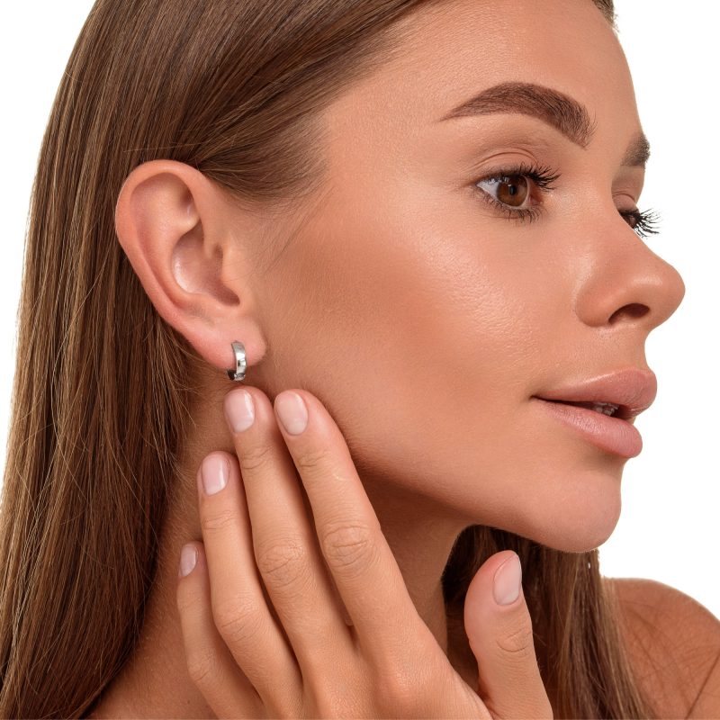 Жіночі сережки "Звичай" — це класичні сережки конго з білого золота 585 проби з родієвим покриттям. Їх лаконічна форма та надійна застібка-кільце роблять ці сережки універсальними для будь-якого випадку, додаючи елегантності вашому повсякденному образу.