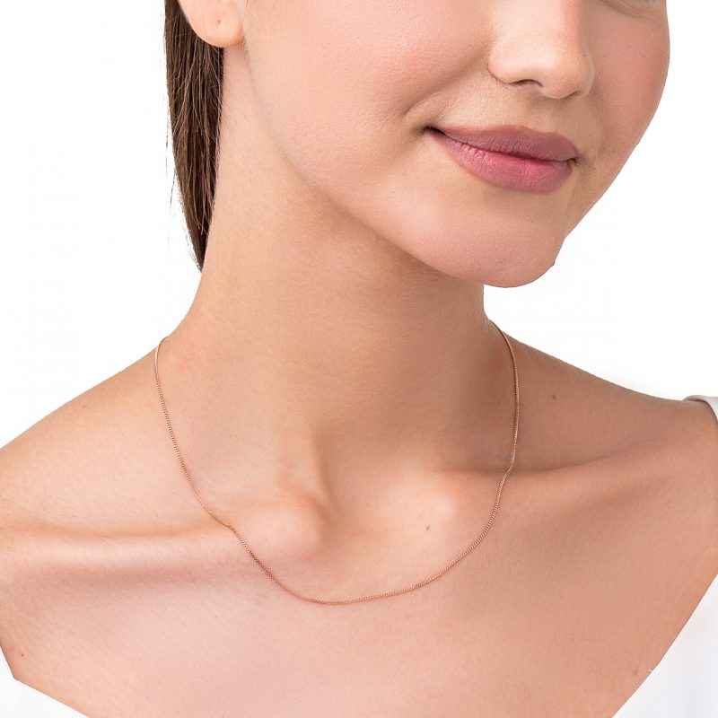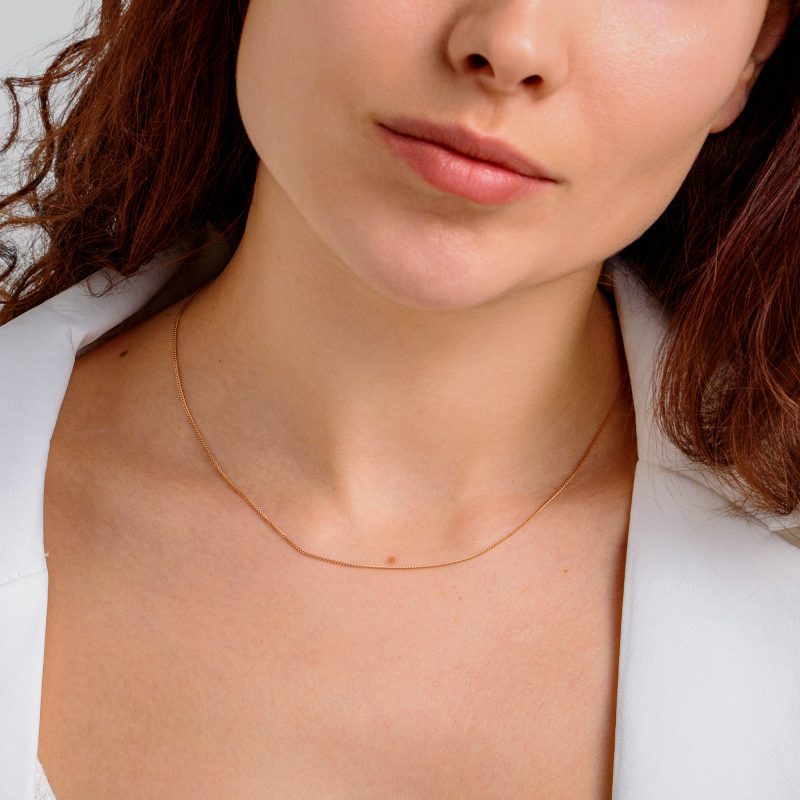 Золотий ланцюжок - класика, виготовлений з червоного золота 585 проби, що забезпечує його неперевершений блиск і якість. Простий, але стильний дизайн робить ланцюжок універсальним аксесуаром, який підходить до будь-якого вбрання.